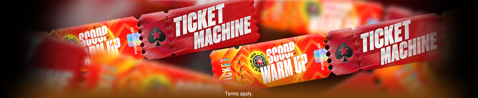 Every day at 00:00 ET, the SCOOP Warm Up Ticket Machine delivers the goods. Winners will get a notification, and each draw hands out 153 x $109 SCOOP Warm Up Main Event tickets.
